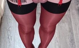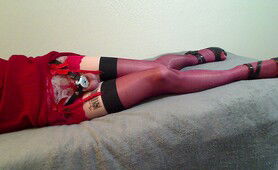 Spreading My Boipussy In A Red Dress Stockings & Heels
