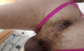 I try my gf's pink lingerie for the first time and i loved it
