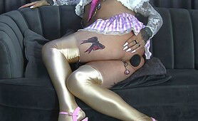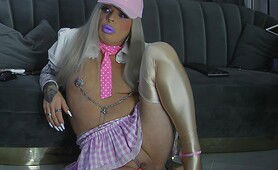Holly posing and exposing her limp sissy clit