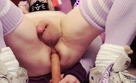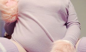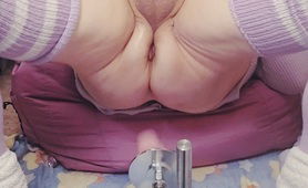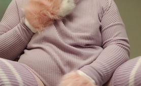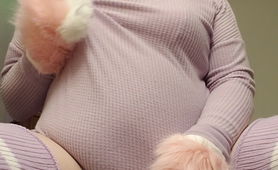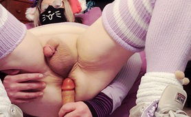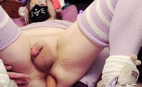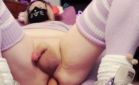 Lavender Sissy In Chastity Presenting Pussy And Plugging