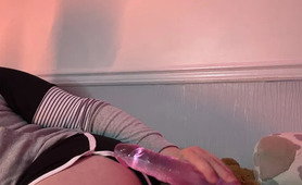 Teasing my smooth sissy pussy with my dildo