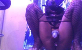 White Fishnets Pink Toes And Plugged Clitty