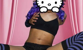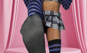 Sissy Nia in training in purple knee-socks